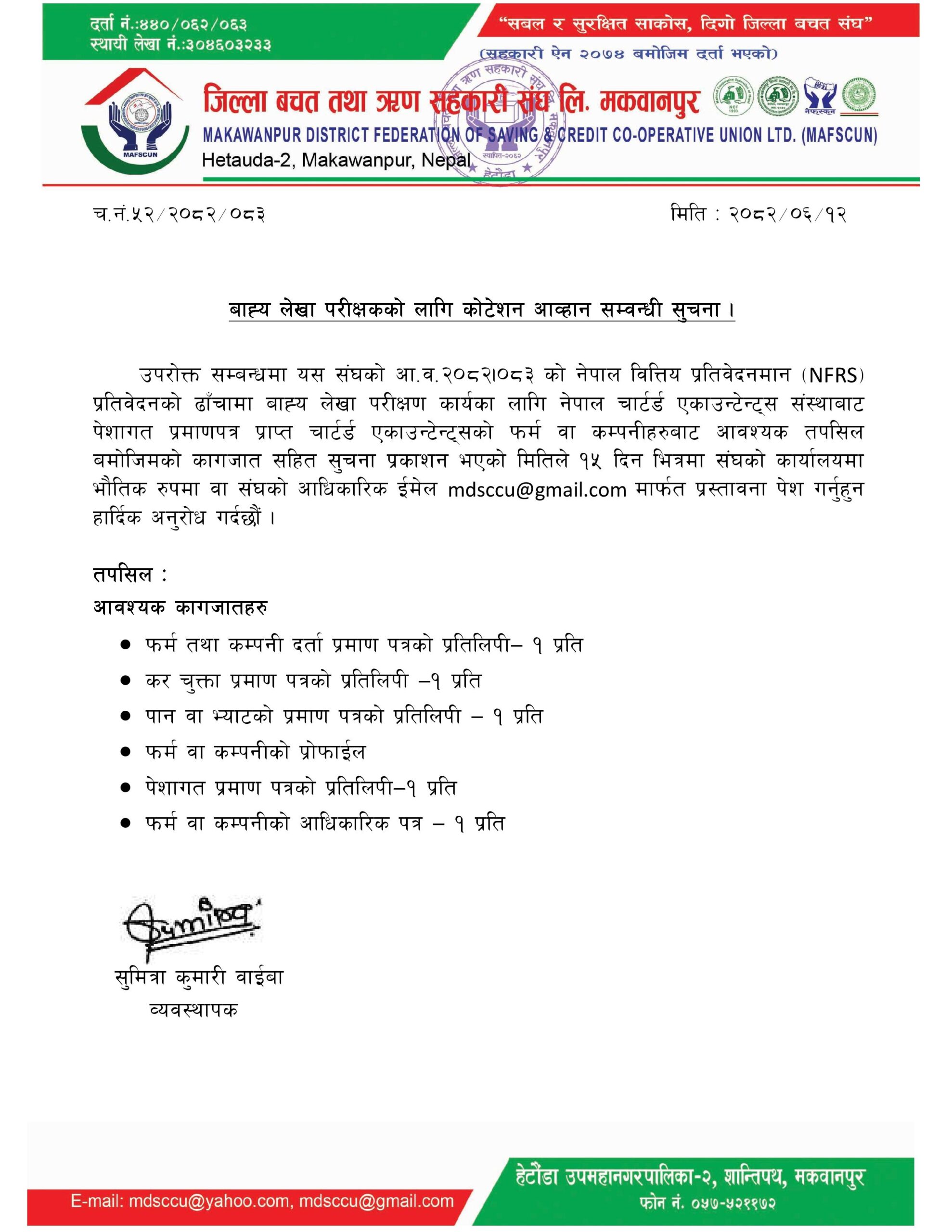 рдордХрд╡рд╛рдирдкреБрд░ рдЬрд┐рд▓реНрд▓рд╛рдорд╛ рджрд░реНрддрд╛ рднрдПрдХрд╛ рдмрдЪрдд рддрдерд╛ рдЛрдг рд╕рд╣рдХрд╛рд░реА рд╕рдВрд╕реНрдерд╛рд╣рд░реБрдХреЛ рдЬрд┐рд▓реНрд▓рд╛рдорд╛ рд╡рд┐рд╖рдпрдЧрдд рдЫрд╛рддрд╛ рд╕рдВрдЧрдардирдХрд╛ рд░реБрдкрдорд╛ рджрд░реНрддрд╛ рднрдПрдХреЛ рдпрд╕ рдЬрд┐рд▓реНрд▓рд╛ рдмрдЪрдд рддрдерд╛ рдЛрдг рд╕рд╣рдХрд╛рд░реА рд╕рдВрдШ рд▓рд┐. рдкреНрд▓рд╛рди рдЗрдиреНрдЯрд░рдиреЗрд╢рди рдордХрд╡рд╛рдирдкреБрд░ рдХрд╛рд░реНрдпрдХреНрд░рдордХреЛ рдПрдХ рдорд╣рддреНрд╡рдкреВрд░реНрдг рд╕рд╣рдХрд╛рд░реНрдпрдорд╛ рд╕рдВрдЧрдард┐рдд рднрдПрдХреЛ рд╕рдВрдШрдХреЛ рдЗрддрд┐рд╣рд╛рд╕ рд╣реЗрд░реНрджрд╛ рдкреНрд▓рд╛рдирд▓реЗ рддрддреНрдХрд╛рд▓рд┐рди реирежрелрек рд╕рд╛рд▓ рджреЗрдЦрд┐ рдордХрд╡рд╛рдирдкреБрд░рдХрд╛ рд╡рд┐рднрд┐рдиреНрди рдЧрд╛.рд╡рд┐.рд╕.рдорд╛ рдорд╣рд┐рд▓рд╛ рд╕рд╢рдХреНрддрд┐рдХрд░рдгрдХреЛ рдкрд╛рдЯреЛрдорд╛ рдХрд╛рд░реНрдп рдЧрд░реА...