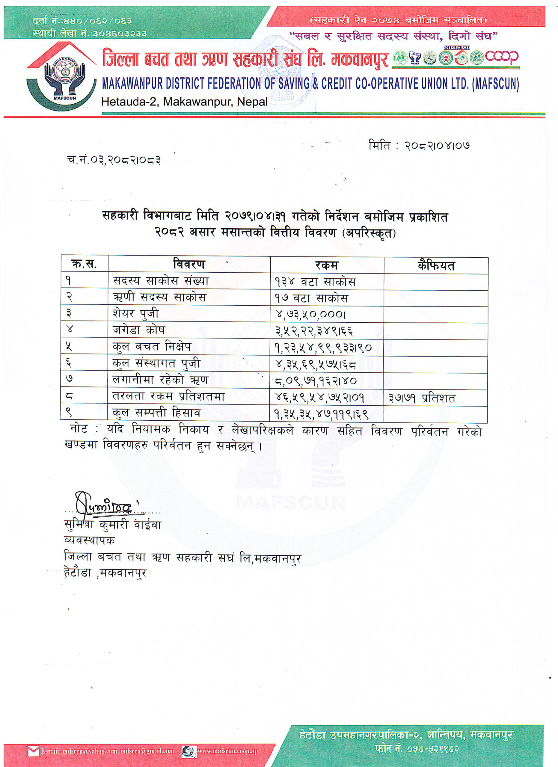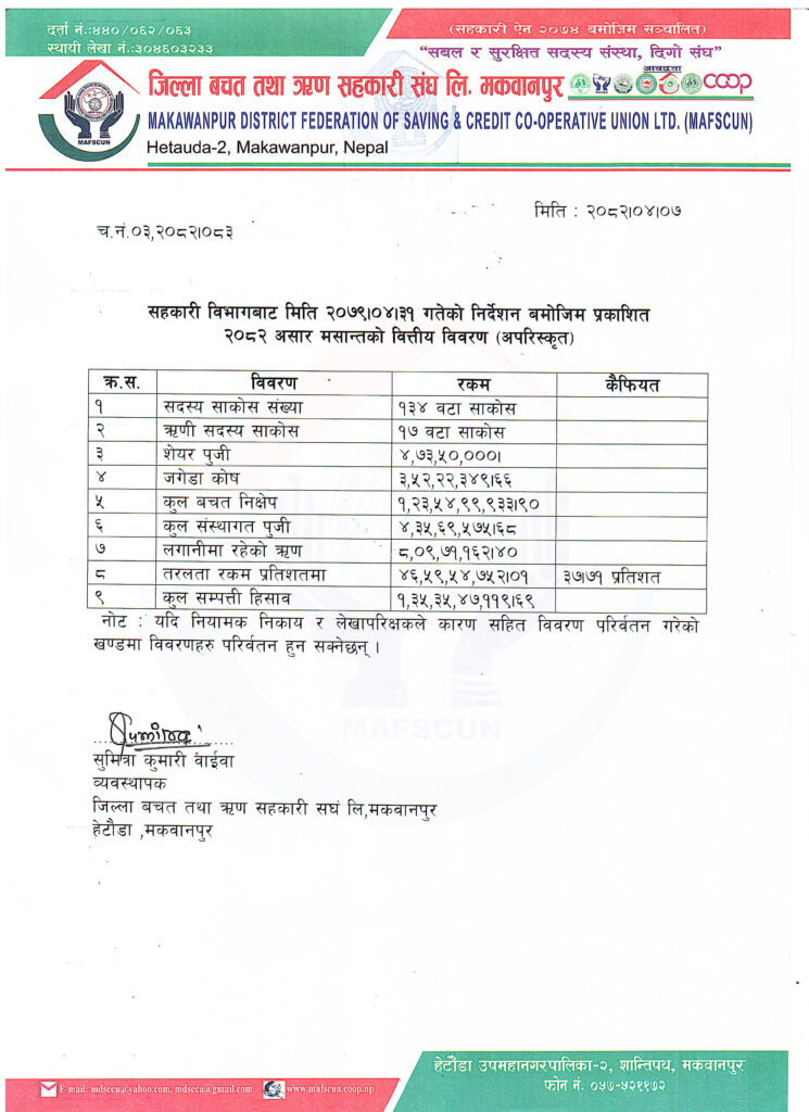 सहकारी विभागबाट मिति २०७९।०४।३१ गतेको निर्देशन बमोजिम प्रकाशित२०८२ असार मसान्तको वित्तीय विवरण ८ श्रावण २०८२, बुधबार १४:०७ Share FacebookTwitterEmail हाम्राे यूटुव टीभी हेर्नकाे लागि यहाँ किलिक गराै ।। Loading...